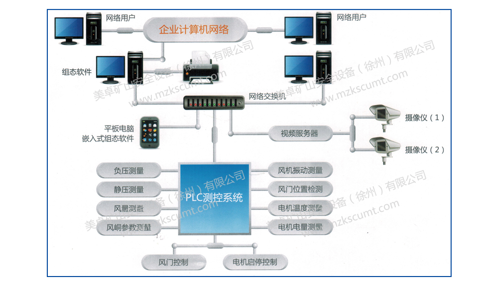 數(shù)據(jù)采集設(shè)備:現(xiàn)場安裝各種數(shù)據(jù)采集傳感器,負(fù)責(zé)對主扇、局扇風(fēng)機(jī)的實時數(shù)據(jù)采集,傳送到PLC監(jiān)測站。