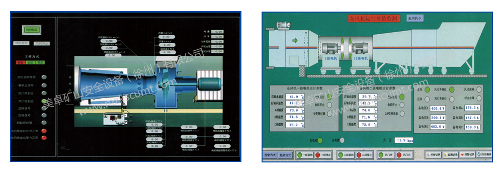 礦井風(fēng)機(jī)是向井下送風(fēng)、抽風(fēng)的重要設(shè)備,也是大型耗能設(shè)備,對其實現(xiàn)在線監(jiān)測監(jiān)控,使之始終運行在良好狀態(tài),對于保障煤礦安全生產(chǎn),保護(hù)礦工生命和企業(yè)財產(chǎn)安全,降低風(fēng)機(jī)能耗具有重要意義。我公司成功研制開發(fā)的風(fēng)機(jī)在線監(jiān)控系統(tǒng),綜合利用現(xiàn)代傳感技術(shù)、微電子技術(shù)、自動控制技術(shù)、計算機(jī)技術(shù)、網(wǎng)絡(luò)通訊技術(shù),基于企業(yè)計算機(jī)網(wǎng)絡(luò)實現(xiàn)主扇、局扇風(fēng)機(jī)運行參數(shù)、通風(fēng)數(shù)據(jù)的實時監(jiān)測與風(fēng)機(jī)主輔設(shè)備控制的—體化,監(jiān)測內(nèi)容豐富,控制功能完善,具有實時性強(qiáng)、安全可靠、操作方便、易學(xué)易用的特點。