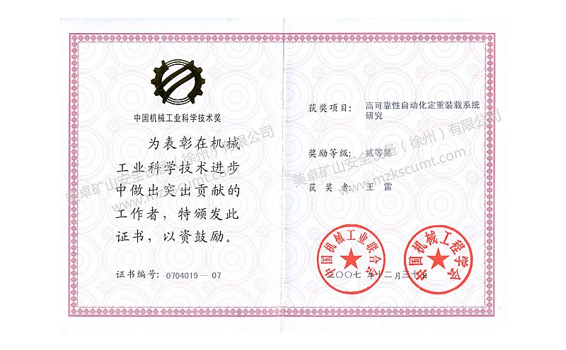 裝載系統(tǒng)研究貳等獎